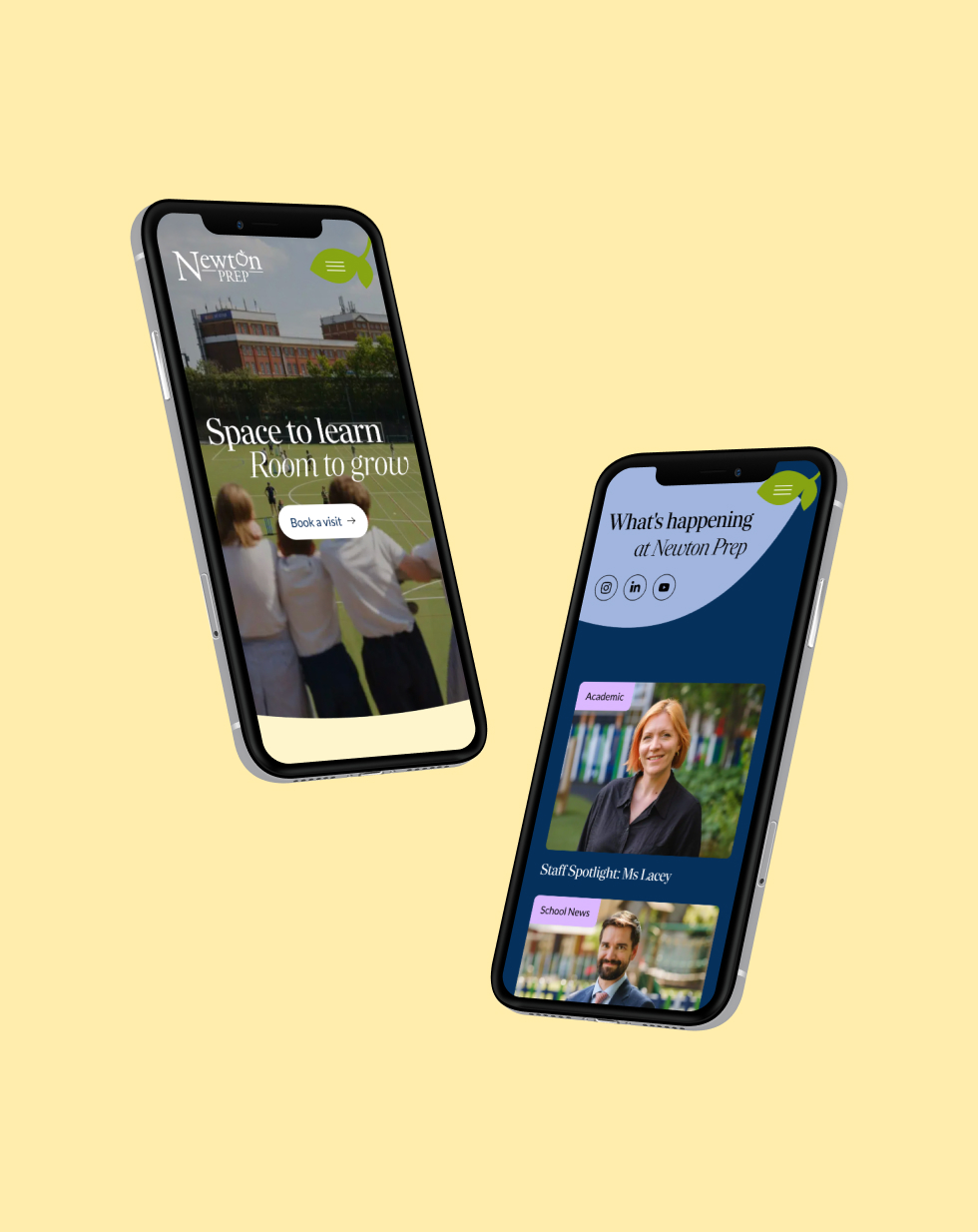 We brought their refreshed brand to life through a bold, welcoming and experience-led website that puts students and community at the centre. Our concept uses vibrant colour, movement and graphical elements inspired by the leaf in the Newton Prep logo. It clearly defines the schools values, supporting them with warm, welcoming language that foster a strong sense of strong sense of belonging.