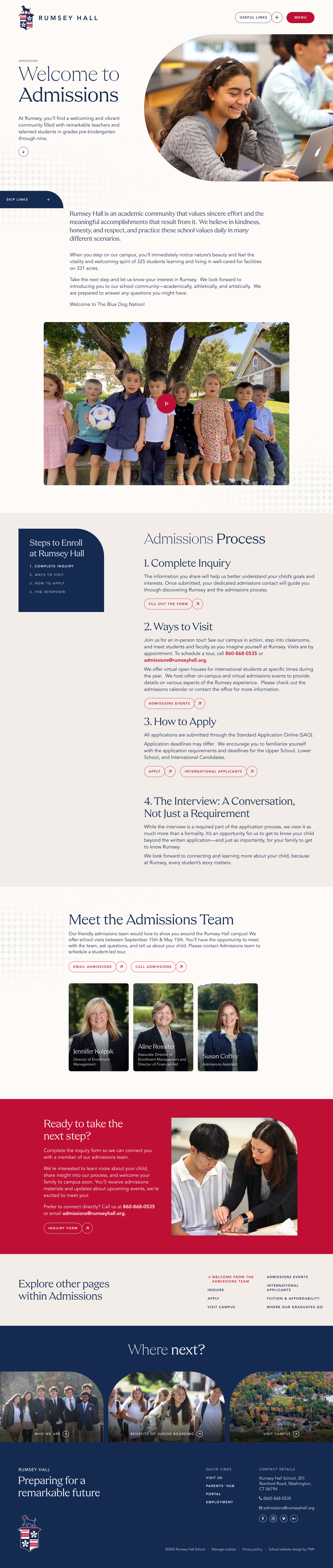 Rumsey’s previous website had become dated and no longer reflected the school’s character or aspirations. We set out to create a fresh, authentic, and user-friendly website that truly embodies Rumsey Hall’s values and mission—offering prospective families a seamless experience through rich storytelling, compelling visuals, and intuitive navigation.